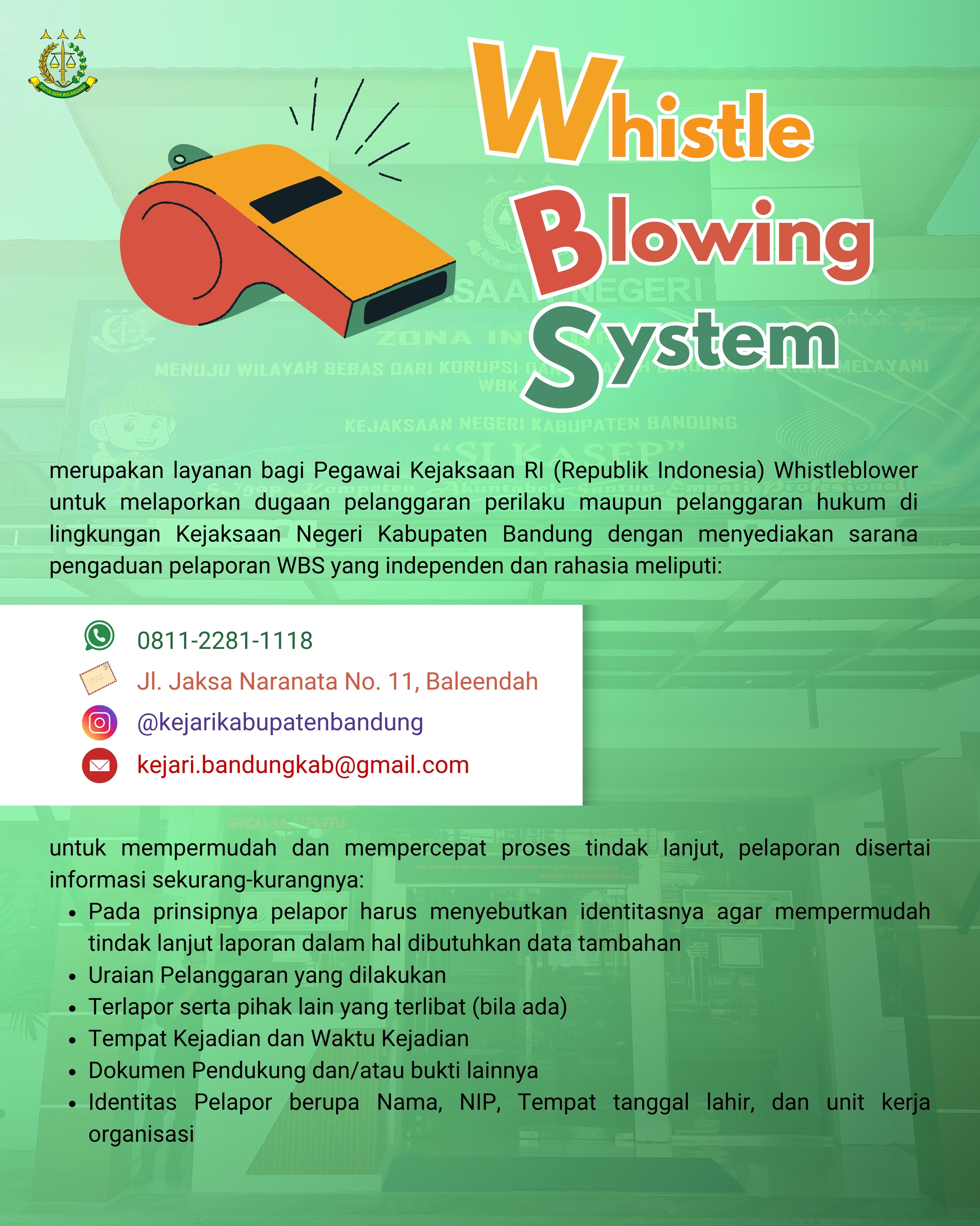 Dokumentasi video kegiatan, agenda, dan program yang telah dilakukan oleh Kejaksaan Negeri Kabupaten Bandung dalam mendukung Zona Integritas menuju Wilayah Bebas Korupsi (WBK) dan Wilayah Birokrasi Bersih dan Melayani (WBBM).